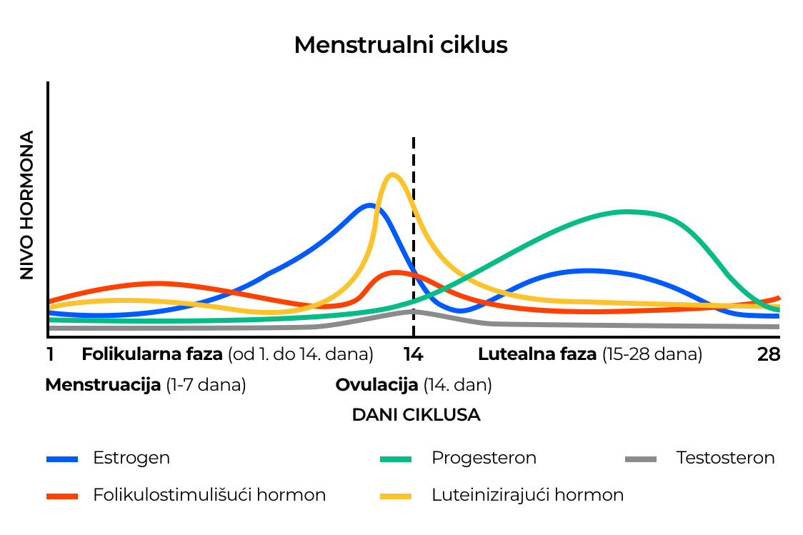 Uprkos individualnim varijacijama uzrokovanim životnim stilom, genetikom ili stresom, hormonske fluktuacije u telu žene obično prate ciklus od otprilike 28 dana.