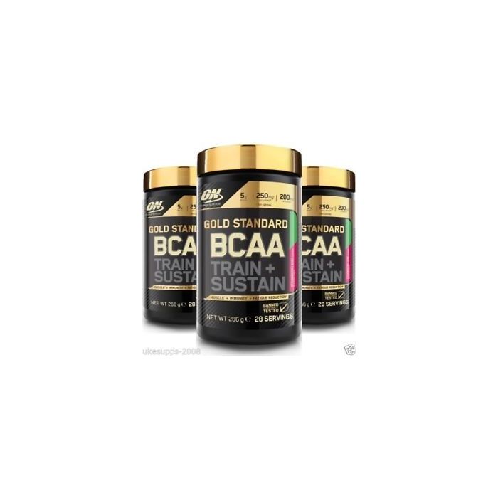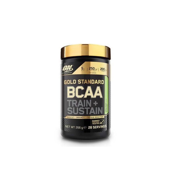 Gold Standard BCAA Train Sustain je originalna mešavina nutrijenata za mišiće, imunitet i smanjenje umora. Uključuje razgranate aminokiseline (BCAA), Rhodiola rose-u, vitamin C i magnezijum. BCAA uključuju 3 esencijalne aminokiseline - leucin, izoleucin i valin, koje organizam ne može samostalno proizvesti, pa ih moramo unositi putem ishrane ili dodacima. Aminokiseline su gradivni blokovi proteina koji doprinose rastu i održavanju mišićne mase. Mišići se "kidaju" za vreme treninga, pa je posle vežbanja poželjno nadoknaditi potrebne hranljive sastojke. Svaka doza sadrži do 5 g BCAA.