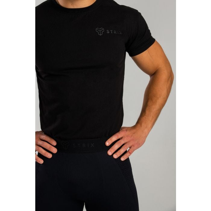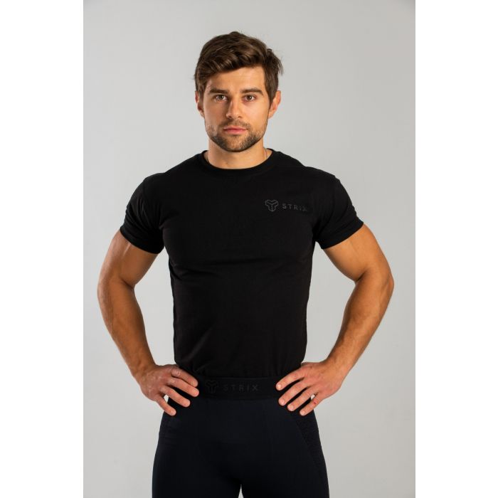 Majica kratkih rukava Essential Black je moderna majica kratkih rukava. Izrađena je od kombinacije pamuka i poliestera. Veoma je prozračna i držaće vas suvim za vreme treninga. Zaljubićete se u njen lagani i udobni materijal, koji je savršeno upotpunjen minimalističkim tamnim dizajnom. Majica je savršena za sportske aktivnosti ali i slobodno vreme.