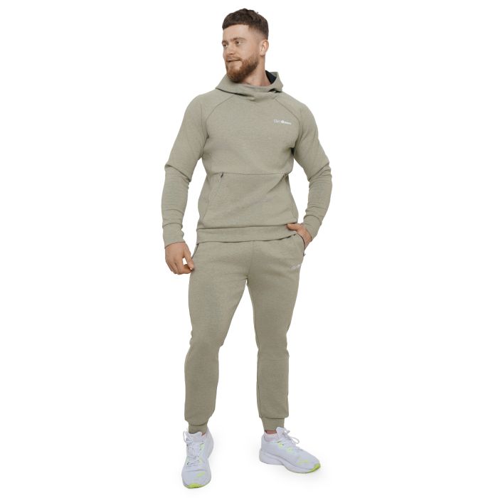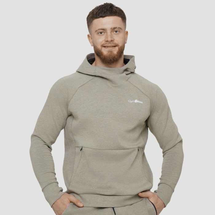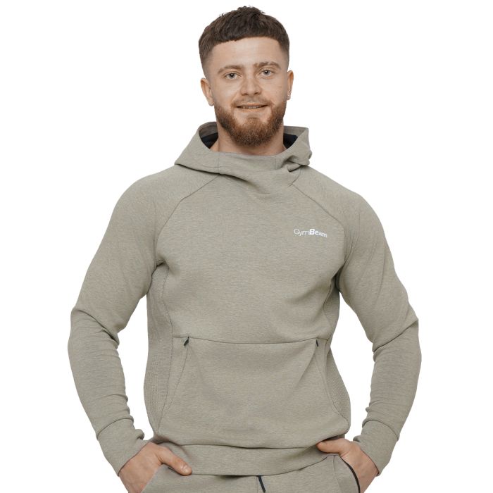 Agile Hoodie Sage - GymBeam	Model je visok 183 cm i nosi veličinu L.
