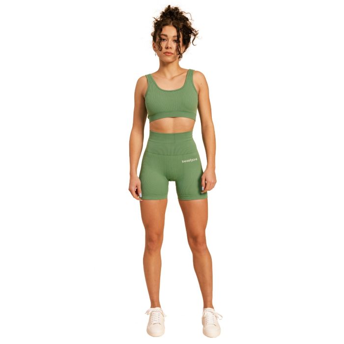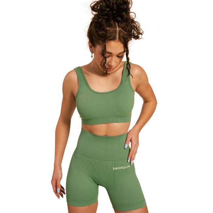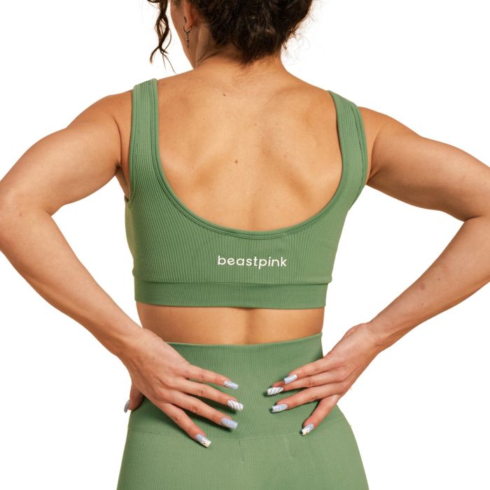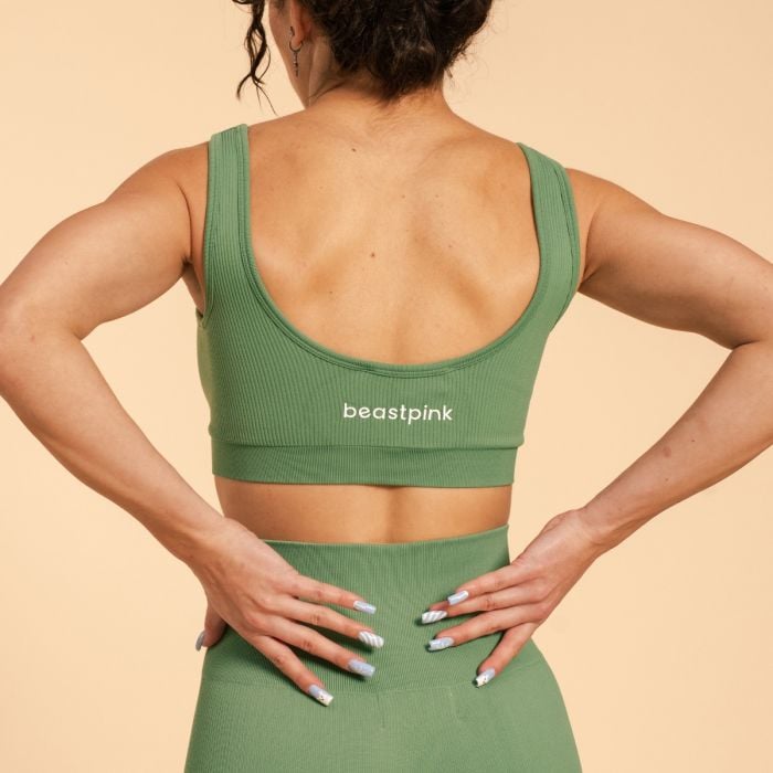 Pored savršeno udobnog materijala, cenićete i njegov kroj. Dizajniran je tako da savršeno obgrli vaše obline, omogućavajući vam da se fokusirate na trening. Vredi pomenuti i njegov bezvremenski dizajn – moderan rebrasti dezen i otvorena leđa daju mu prepoznatljiv izgled, dok ga na leđima krasi diskretan BeastPink logo.