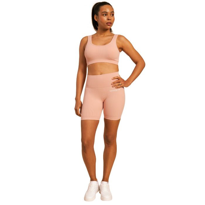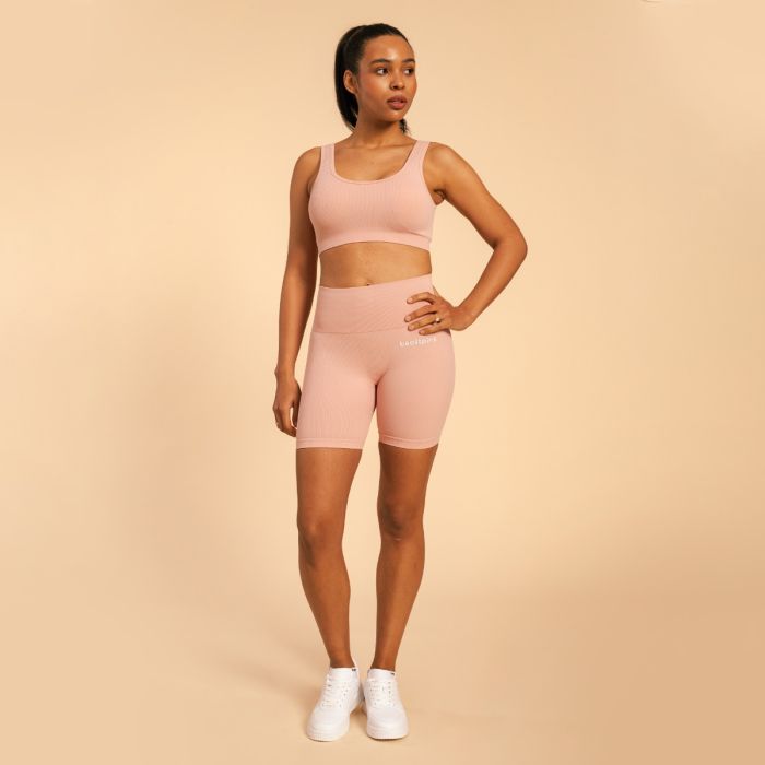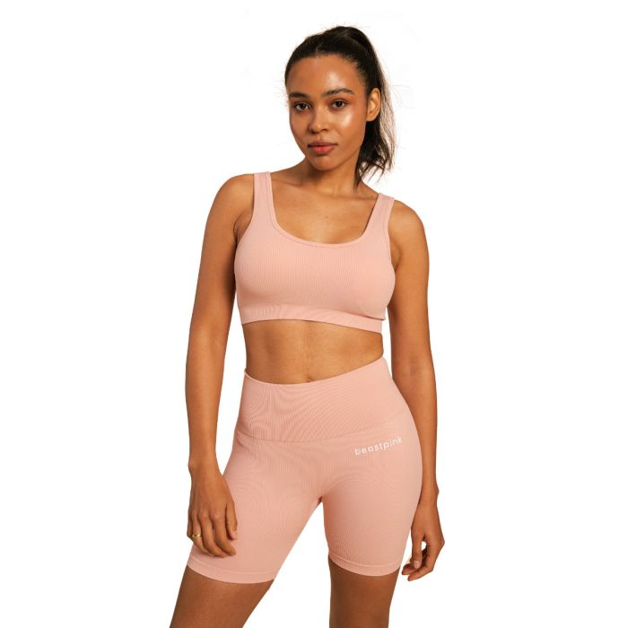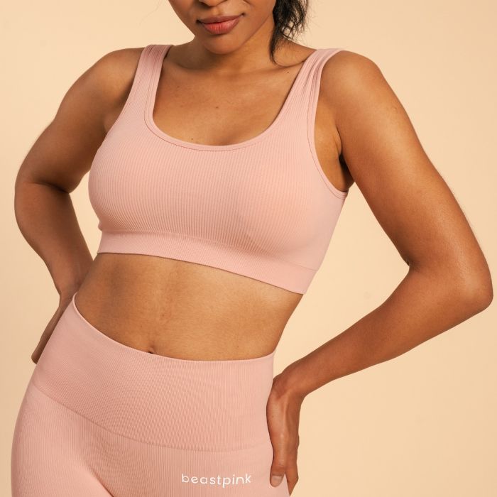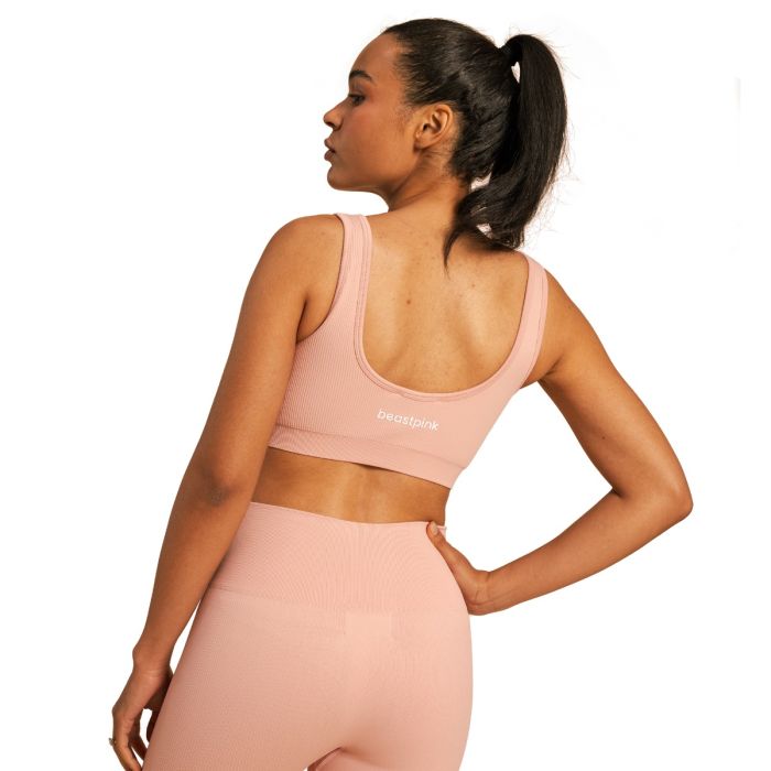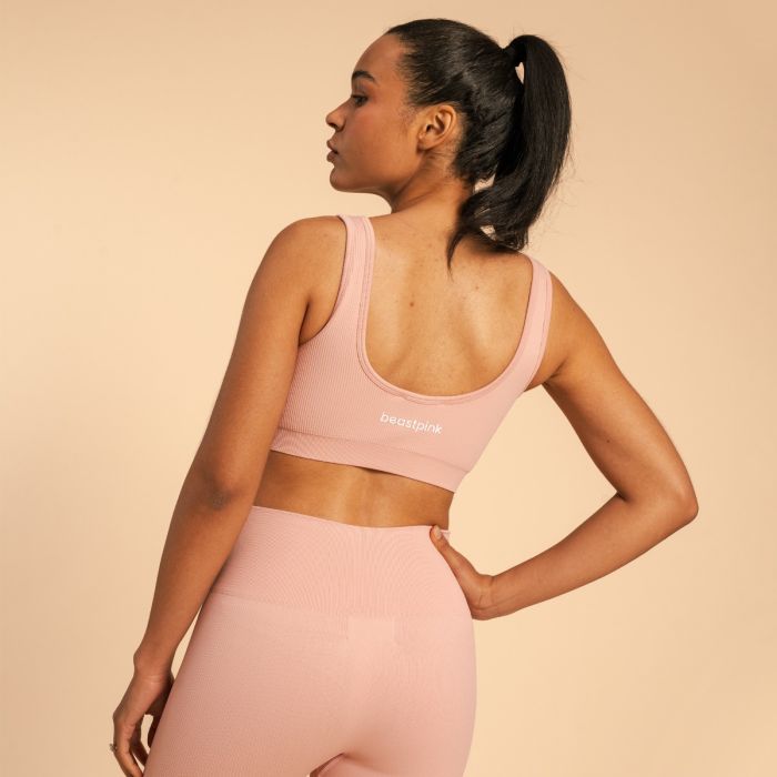 Pored savršeno udobnog materijala, cenićete i njegov kroj. Dizajniran je tako da savršeno obgrli vaše obline, omogućavajući vam da se fokusirate na trening. Vredi pomenuti i njegov bezvremenski dizajn – moderan rebrasti dezen i otvorena leđa daju mu prepoznatljiv izgled, dok ga na leđima krasi diskretan BeastPink logo.