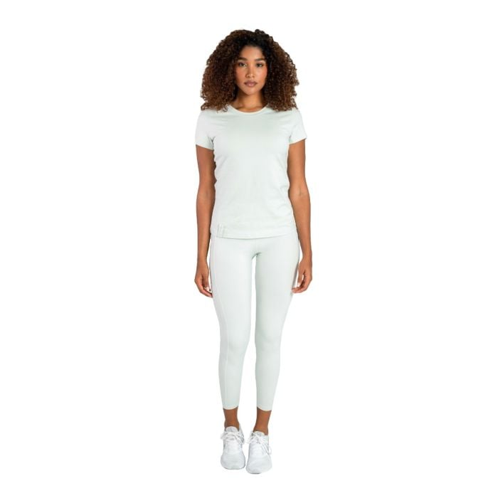 Ženska majica Essential kratkih rukava je udobna i moderna majica idealna za aktivnosti u slobodno vreme koju ćete rado nositi svaki dan. Ističe se prijatnim materijalom koji kombinuje pamuk i elastin. Zahvaljujući tome, majica je prozračna i fleksibilna. Minimalistički dizajn olakšava kombinovanje sa bilo kojim helankama, donjim delom trenerke ili šortsem.