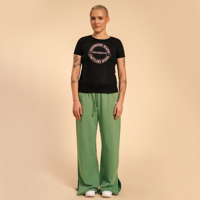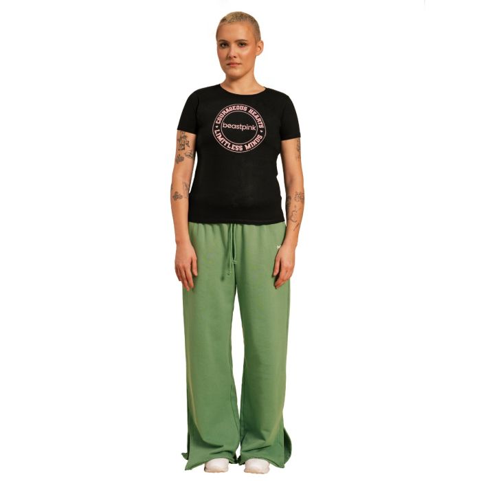 Ženska majica kratkih rukava Serenity je udoban komad odeće izrađen od 100% pamuka. Oduševiće vas svojim laskavim krojem i zanimljivim logoom na grudima koji će istaći vašu posvećenost treningu. Pogodna je za aktivnosti poput joge, šetnje i savršena za ležerno nošenje.
